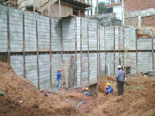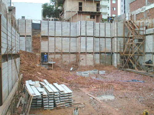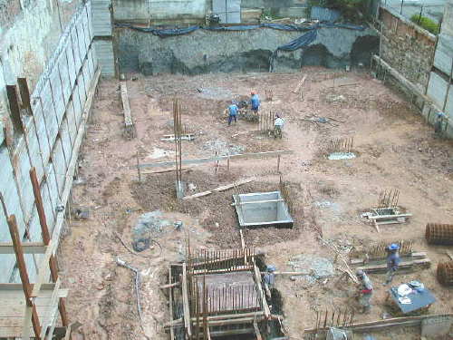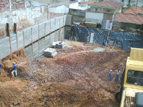 Foto em 24/03/04 - Concretado trecho da cortina do 3o.Sub-Solo. |