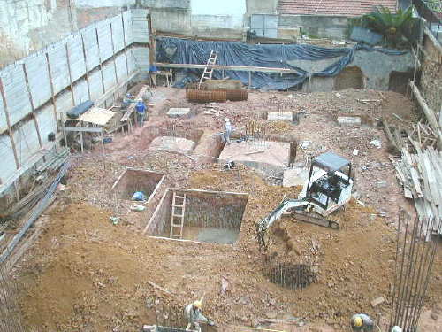 Foto em 20/05/04 - Escavando sapata do elevador. |
