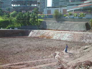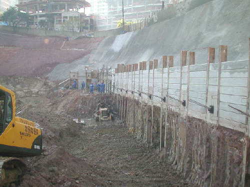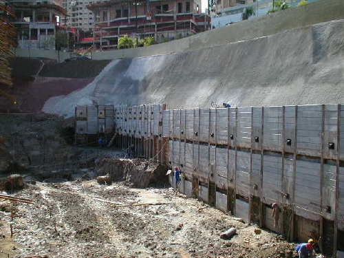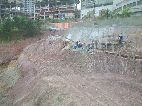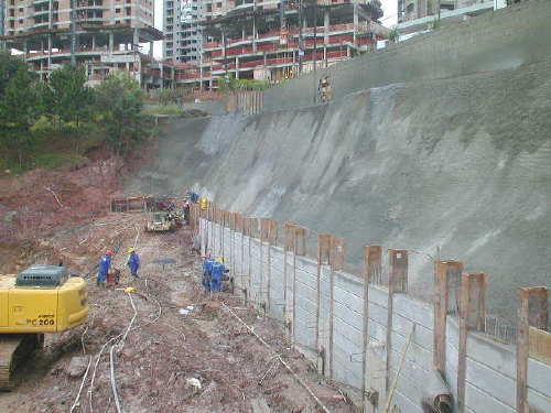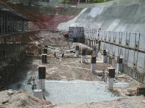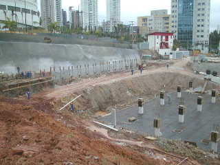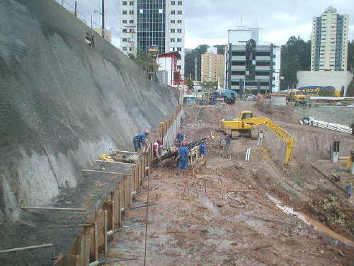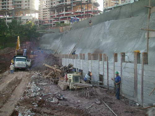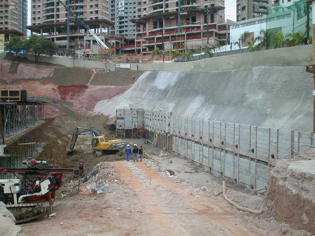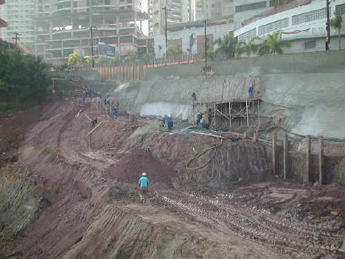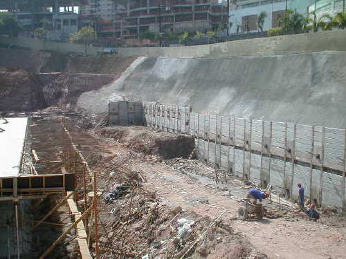 | - Foto em 02/08/05 - Escavando para a 2a.linha de tirantes. | |