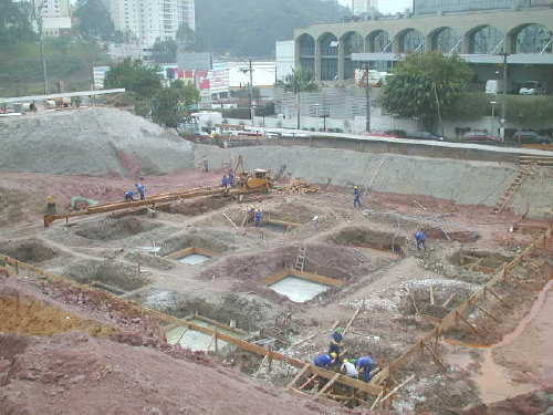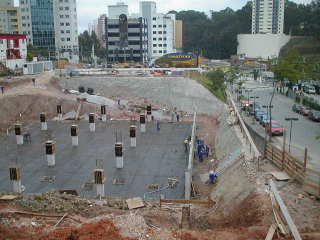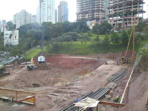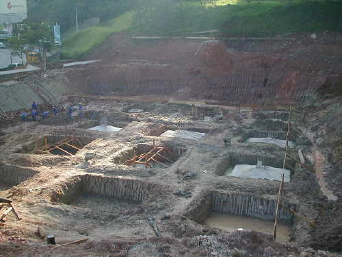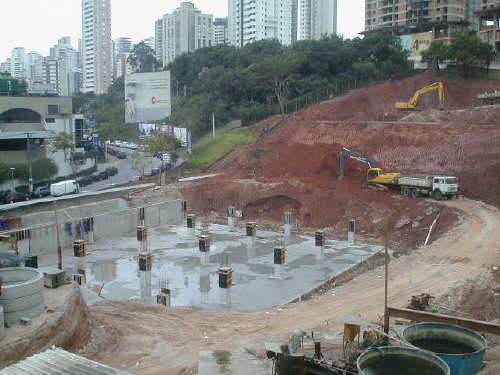 | - Foto em 17/05/05 - Finalizando execução da fundação em estacas escavadas. | |