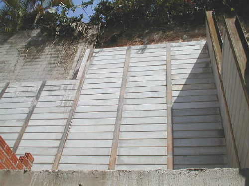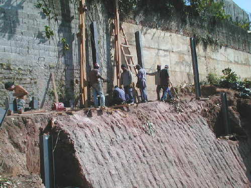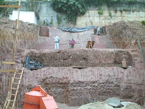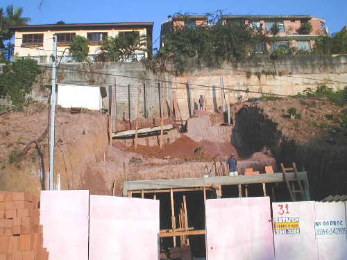 | - Foto em 04/08/03 - Cortina concretada, e escavação final, deixando talude provisório. | |