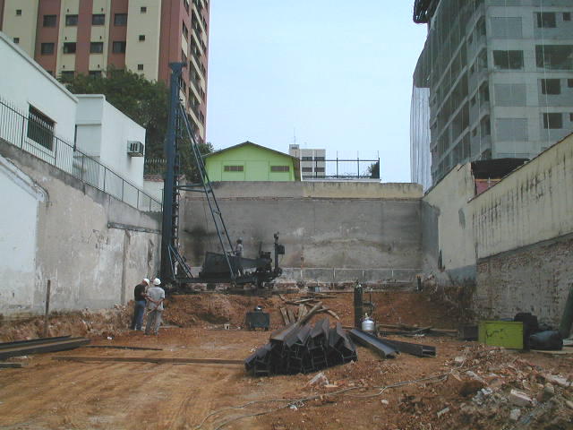 | - Foto em 27/09/2007 - Inicio da cravação dos perfis nas divisas. | |