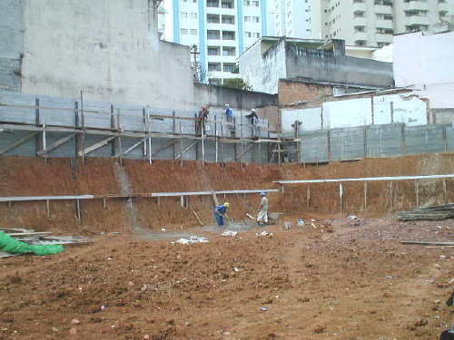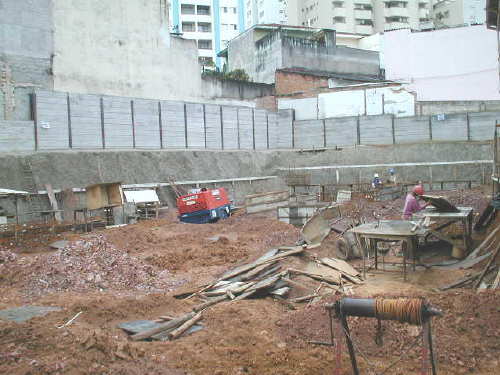 | - Foto em 16/11/03 - Finalizando cortina, e escavação em talude. | |
