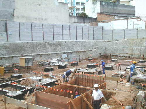 | - Foto em 04/12/03 - Em andamento execução da fundação em tubulão a céu aberto. | |