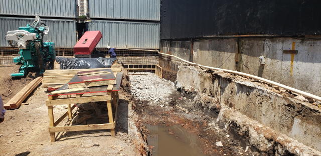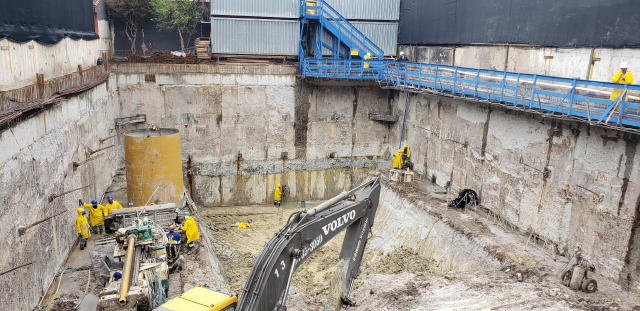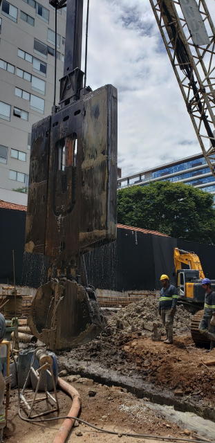 | - Foto em 20/12/2019 - Escavação da parede diafragma junto a periferia. | |