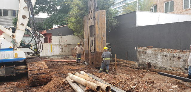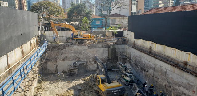 | - Foto em 31/01/2020 - Finalizando escavação da parede diafragma junto a Rua Joaquim F Lobo | |
