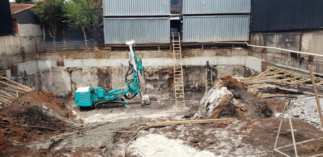 | - Foto em 19/03/2020 - Escavação para a 1a.linha de tirantes. | |