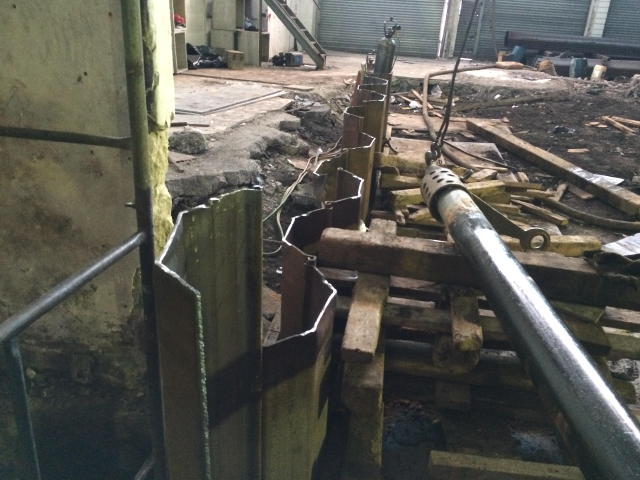 - Foto em 11/07/2018 - Cravação das estacas prancha para a rampa de acesso.