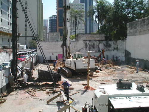 | - Foto em 08/09/04 - Iniciando fundações do prédio em estacas Hélice Continua. | |