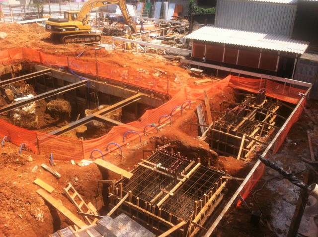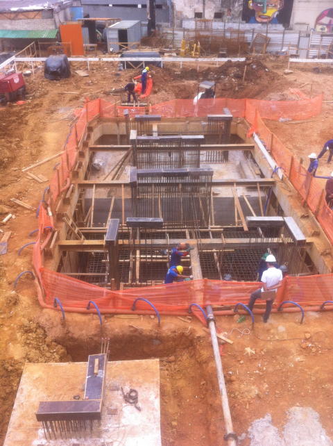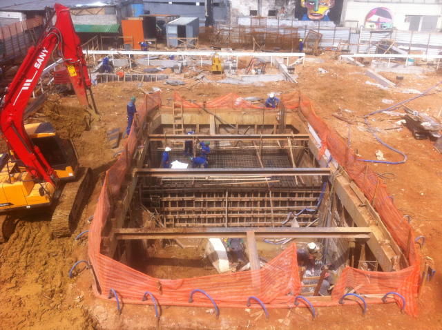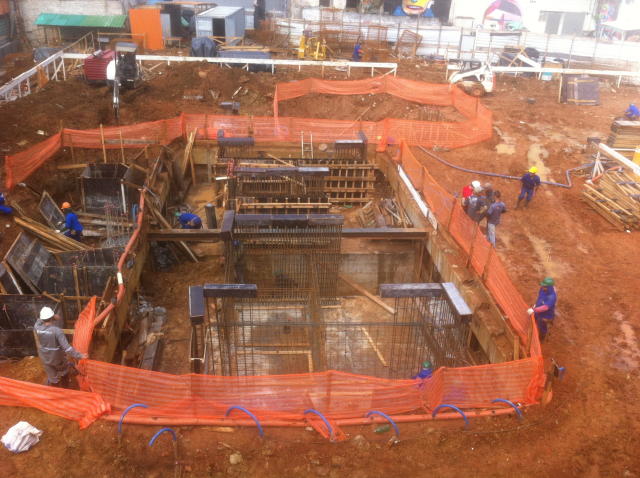 | - Foto em 02/09/2015 - Fundações concluídas, montando cortina do 2o.SS. | |