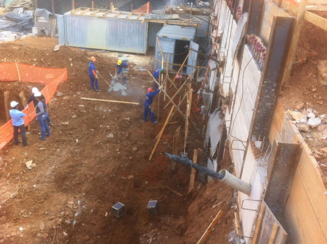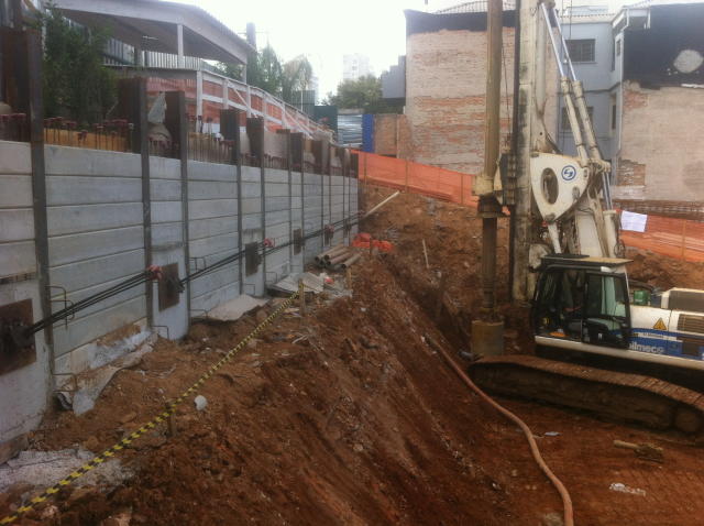 | - Foto em 06/08/2015 - Ancoragens protendidas e escavação até o 2o.SS. | |