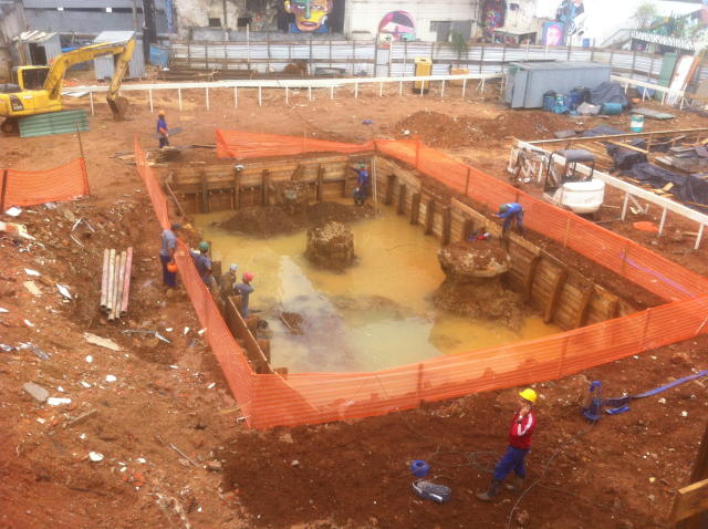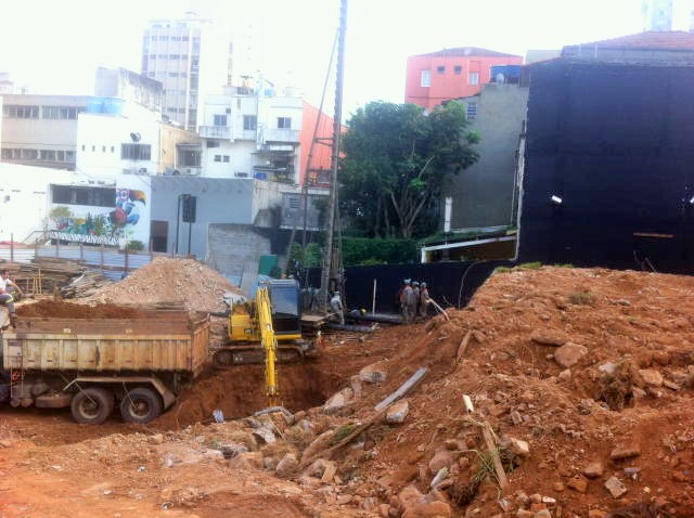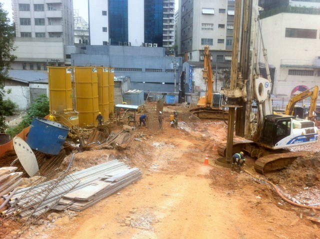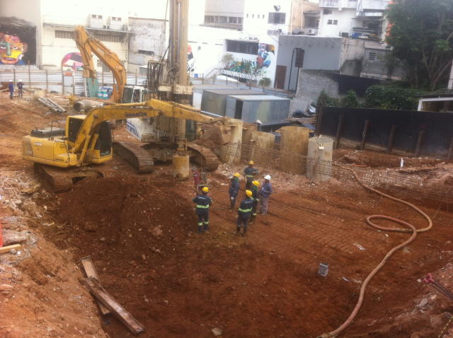 Foto em 06/08/2015 - Escavação de estacas da fundação.