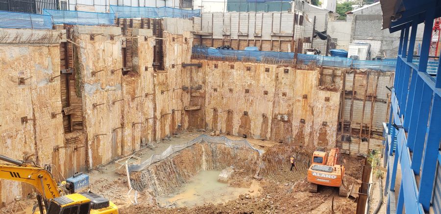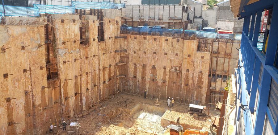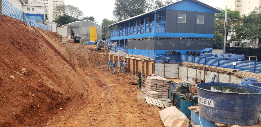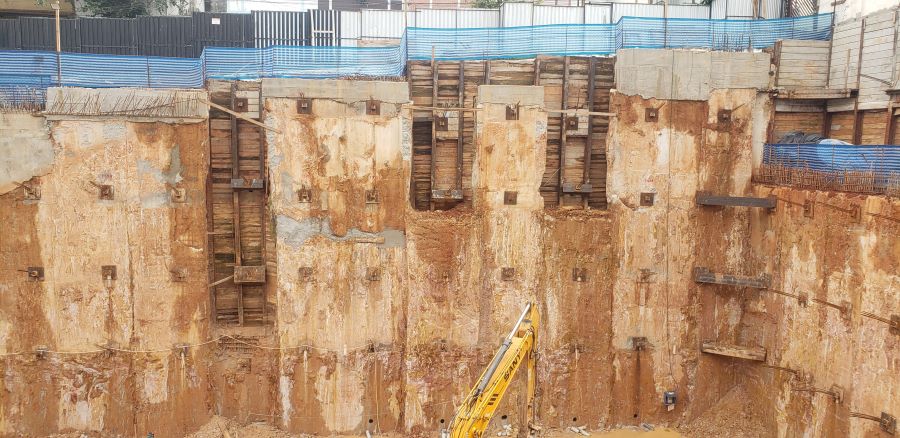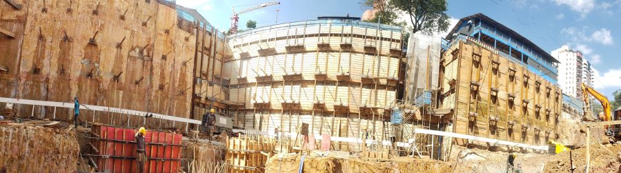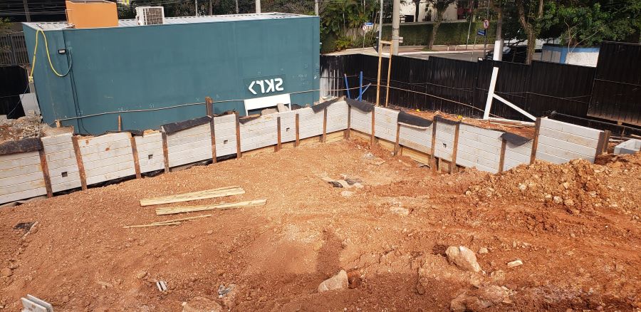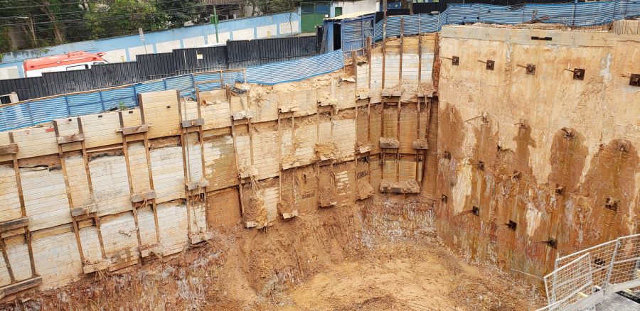 | - Foto em 11/04/2024 - Vista do 5o.Subsolo - Total de Contenção com 19.00m de altura. | |
