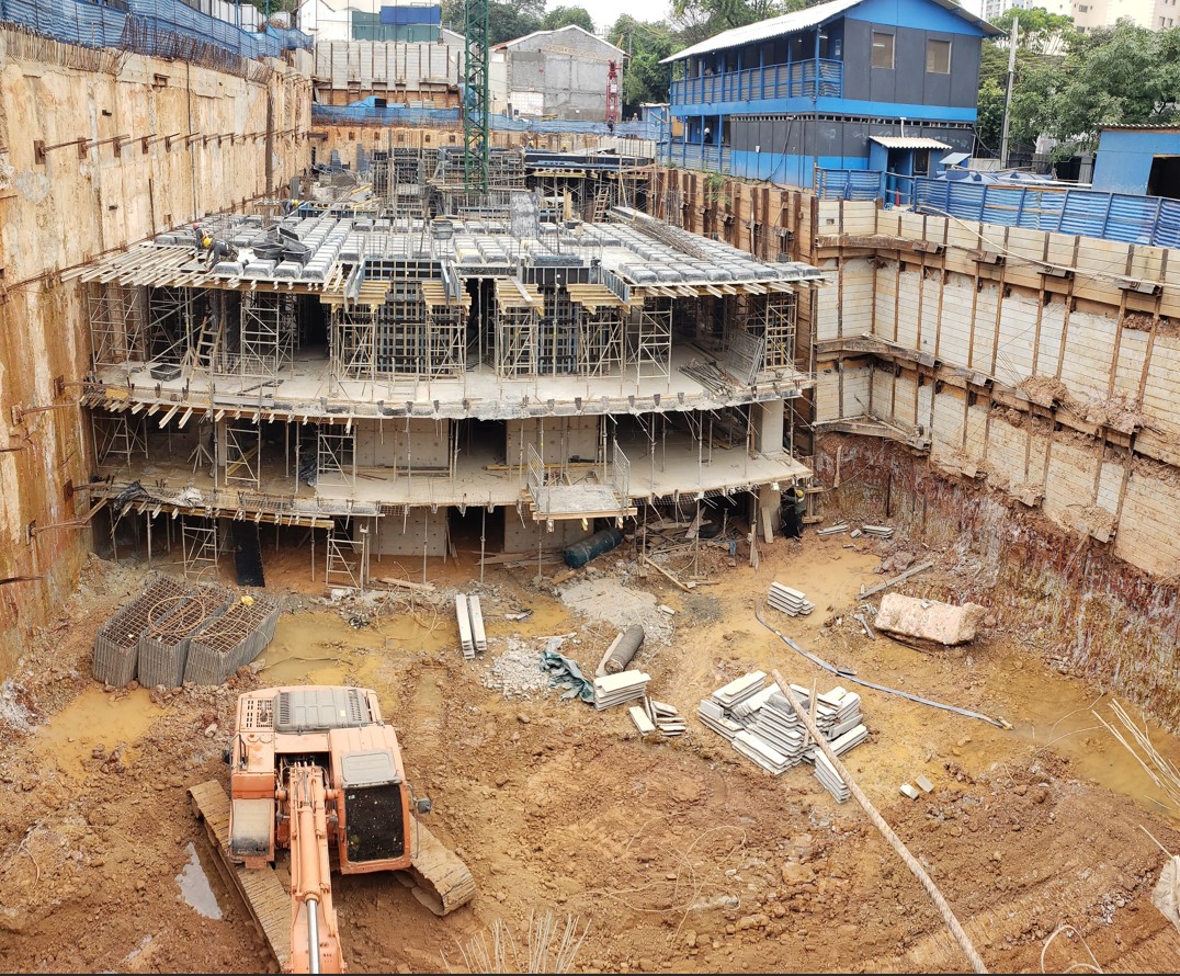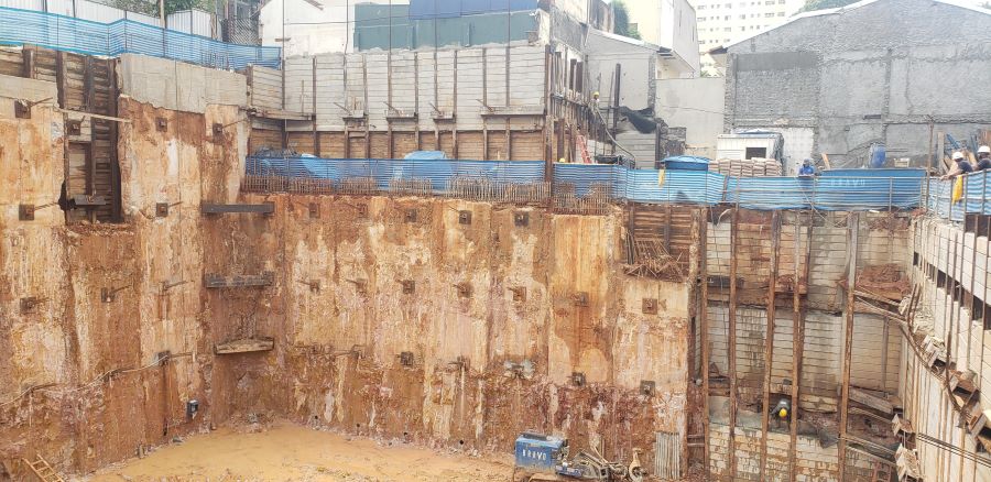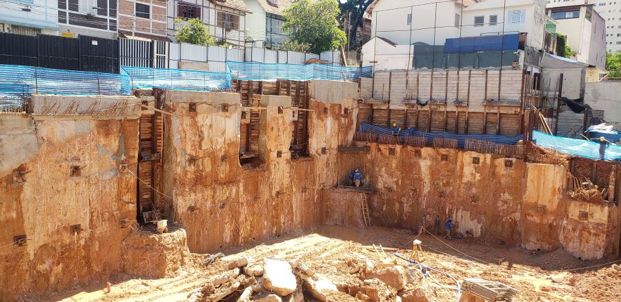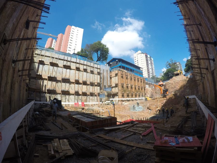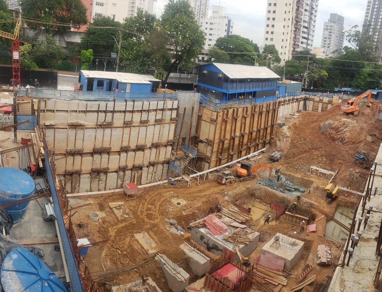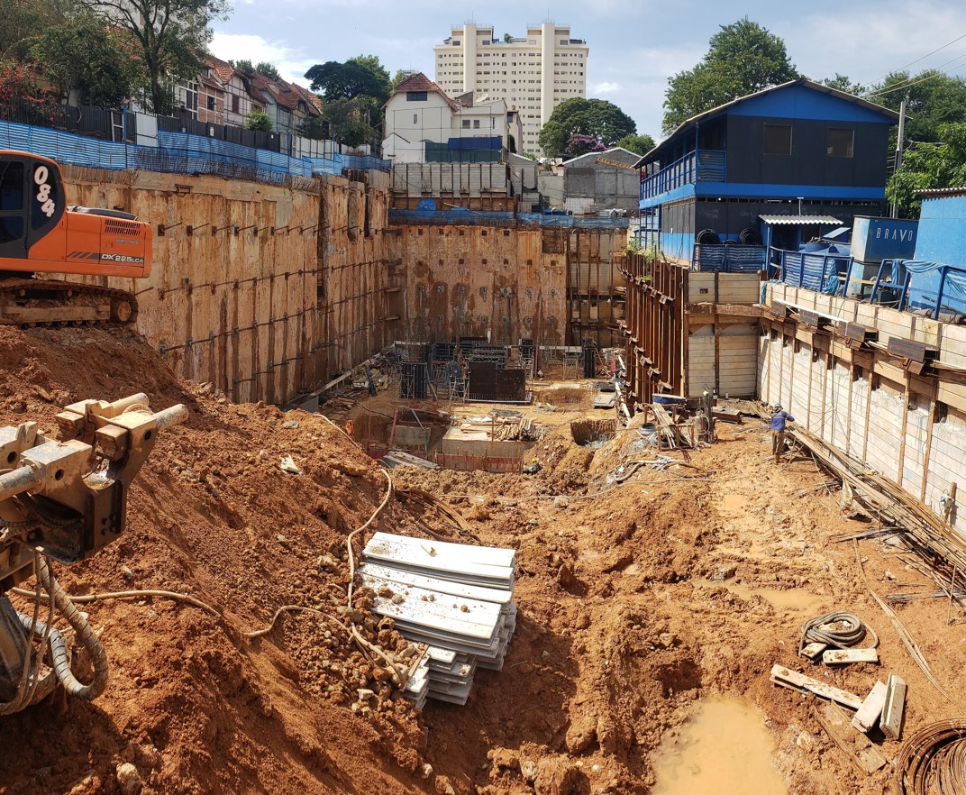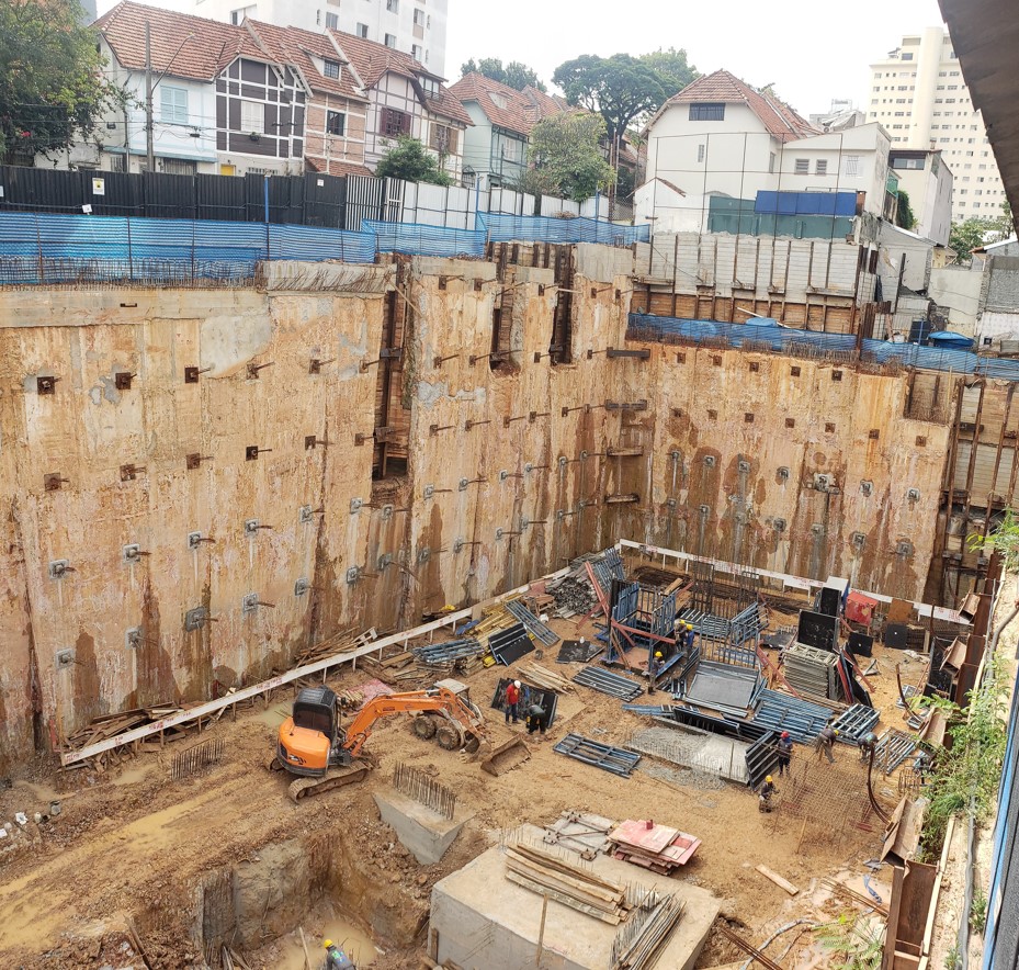 | - Foto em 31/01/2024 - Vista geral da obra com escavação no 3o.SS | |