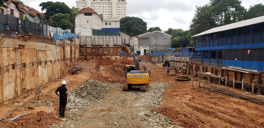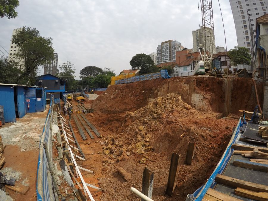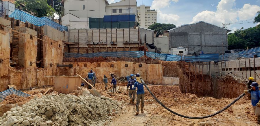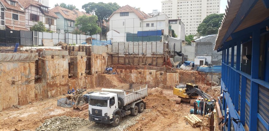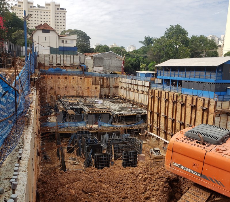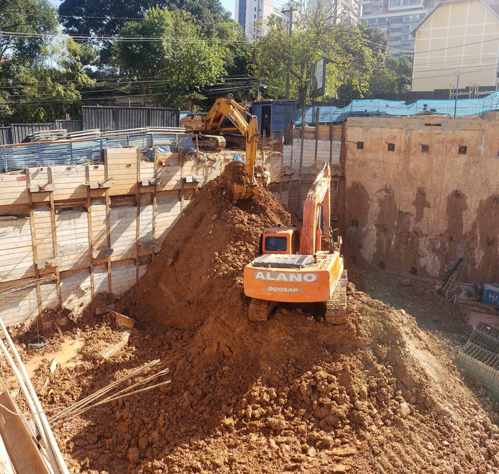 | - Foto em 20/06/2024 - Manobras de escavação para remoção do final da escavação dos subsolos. | |