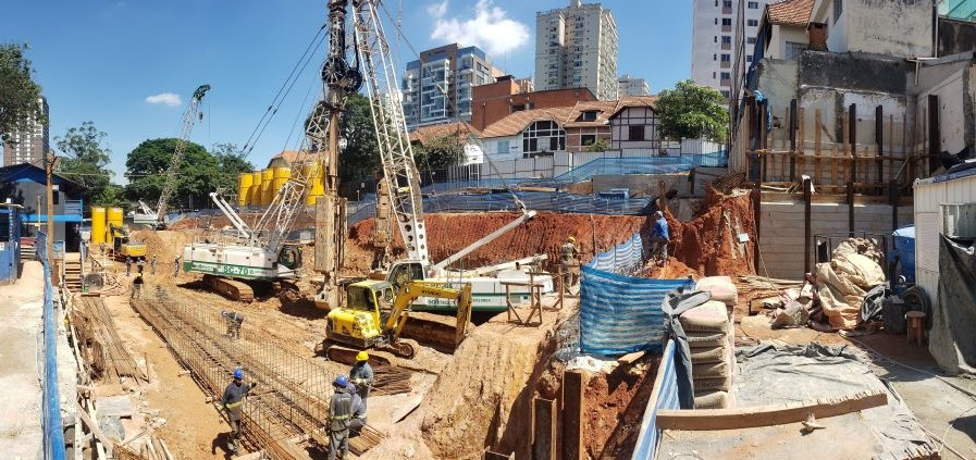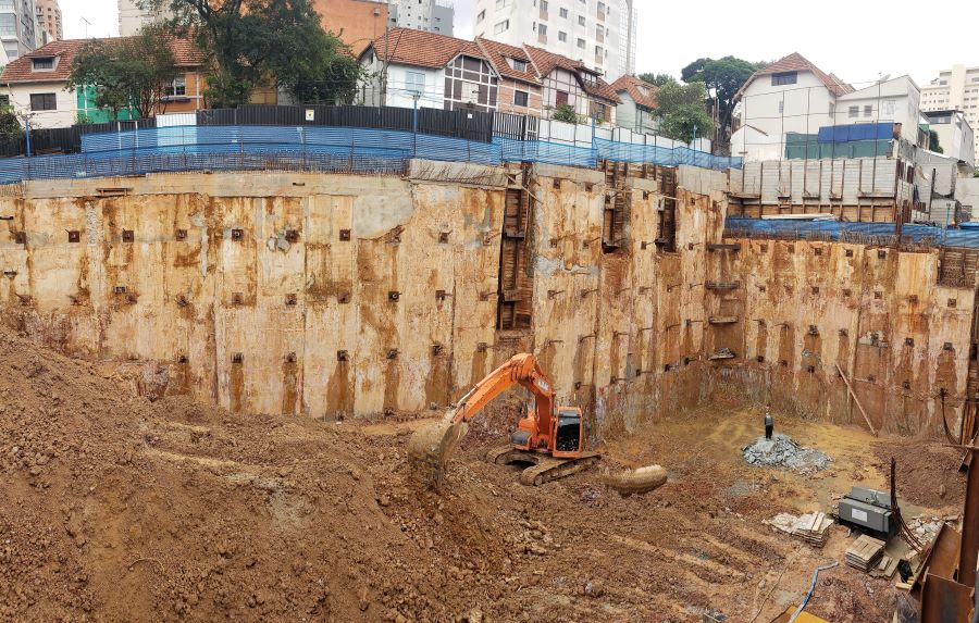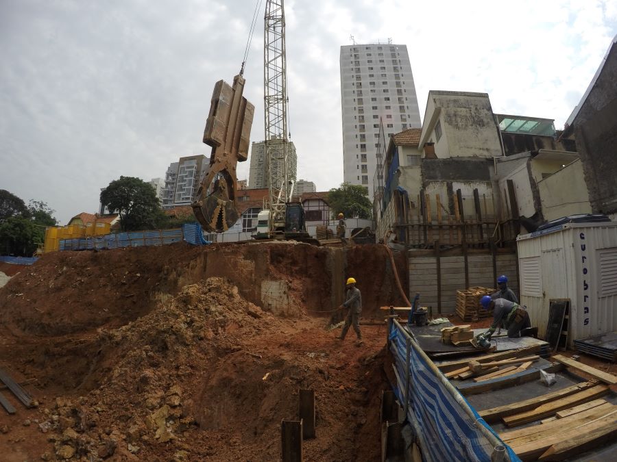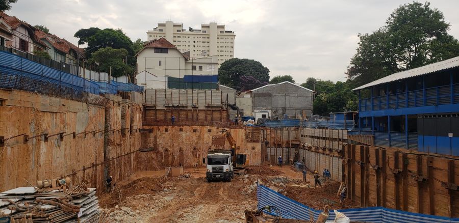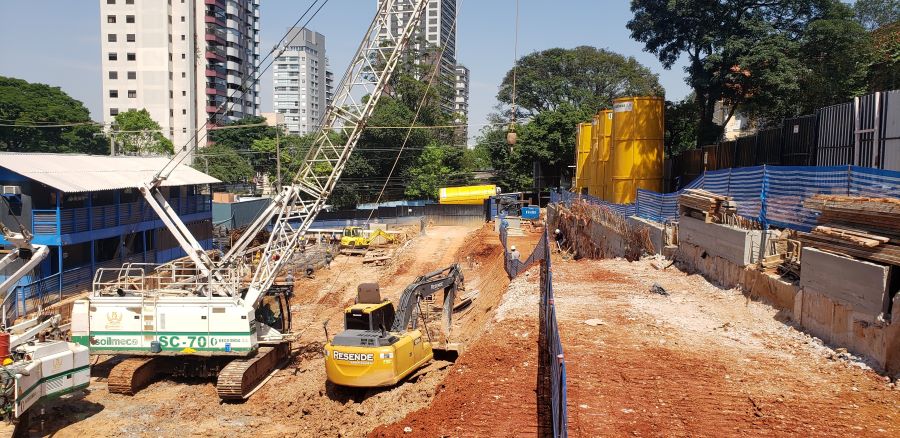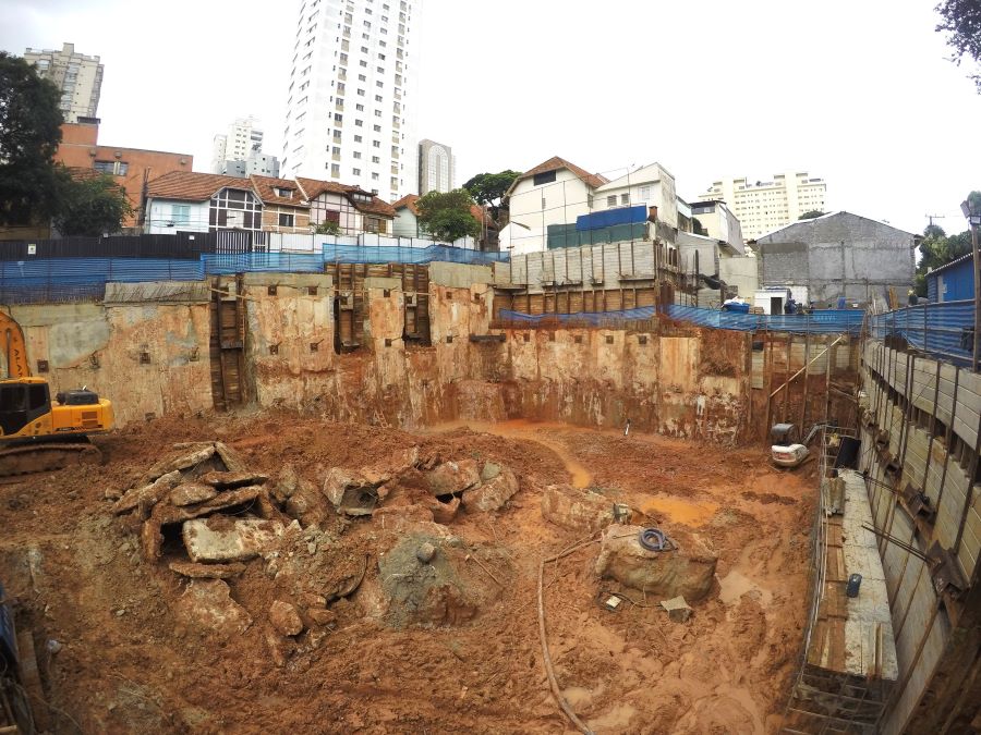 | - Foto em 20/06/2024 - Manobras de escavação para remoção do final da escavação dos subsolos. | |