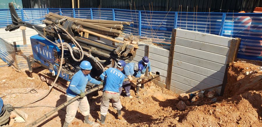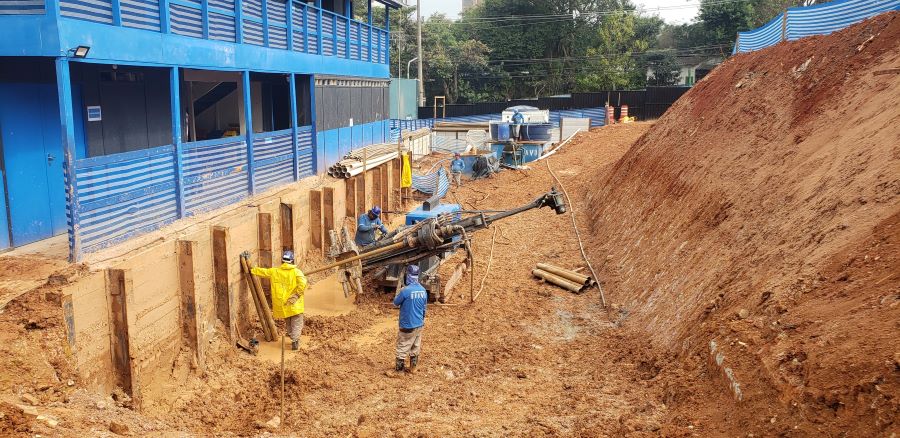 Foto em 05/07/2023 - Perfuração e instalação de tirantes nas contenções. |