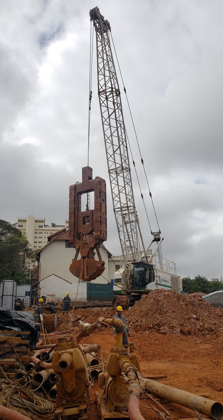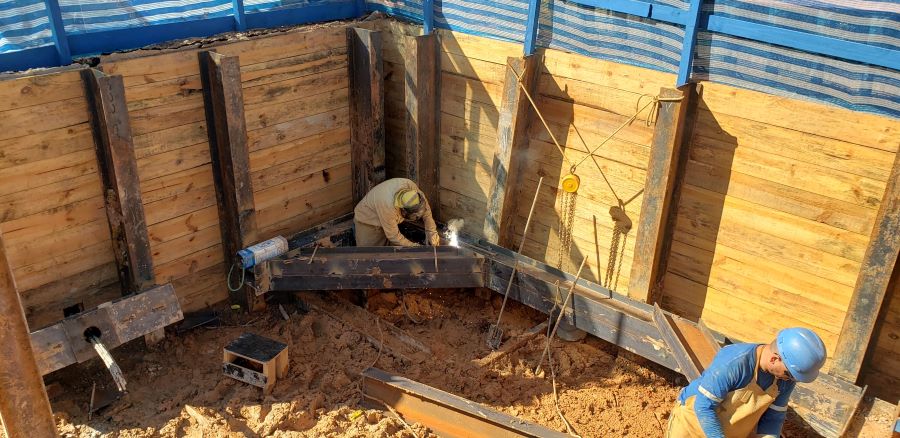 | - Foto em 14/11/2023 - Escavando as fundações em estacas barrete | |