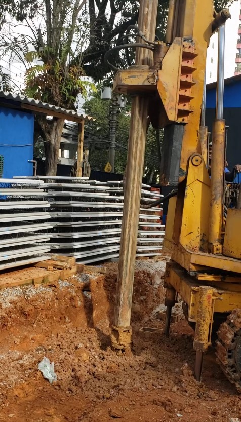 | - Foto em 29/06/2023 - Serviços de pré-furo e cravação de perfis na lateral direita. | |