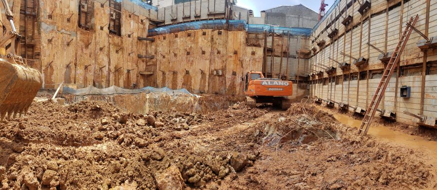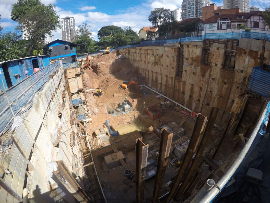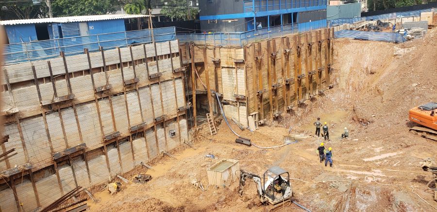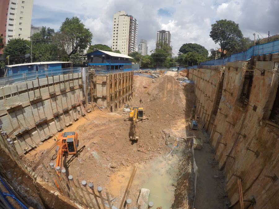 | - Foto em 18/03/2024 - Escavação para o 5o.SS, vista geral da obra e processo de escavação. | |