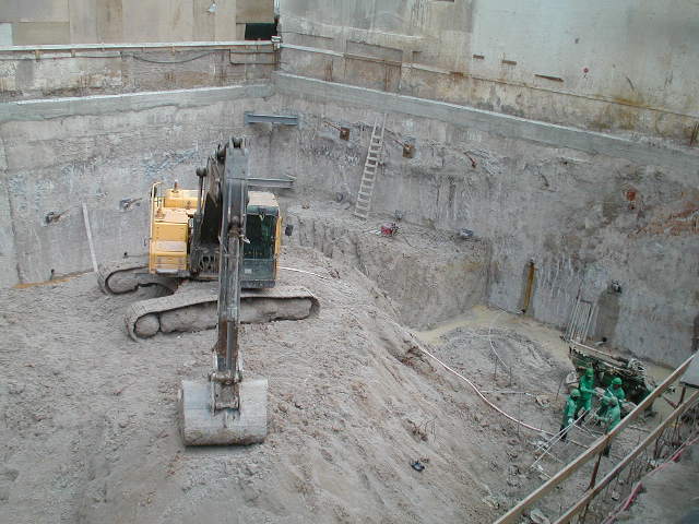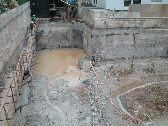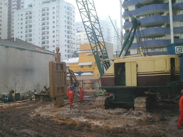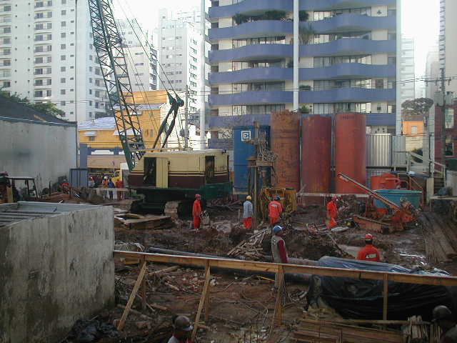 | - Foto em 20/06/2008 - Diafragma concluída, e escavação das estacas barrete. | |