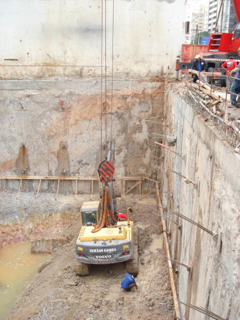 | - Foto em 04/09/2008 - Escavando para a 2a. linha de ancoragens. | |