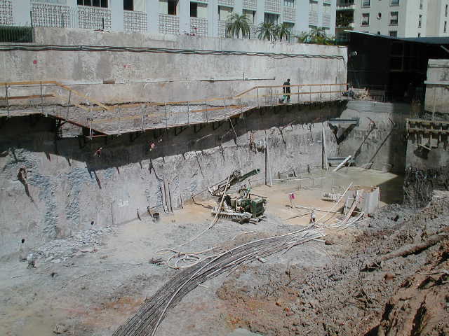 | - Foto em 18/09/2008 - Remoção parcial da rampa para execução dos tirantes. | |