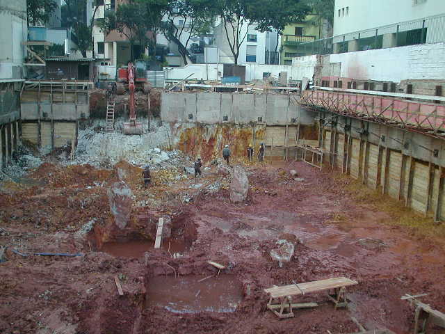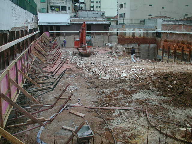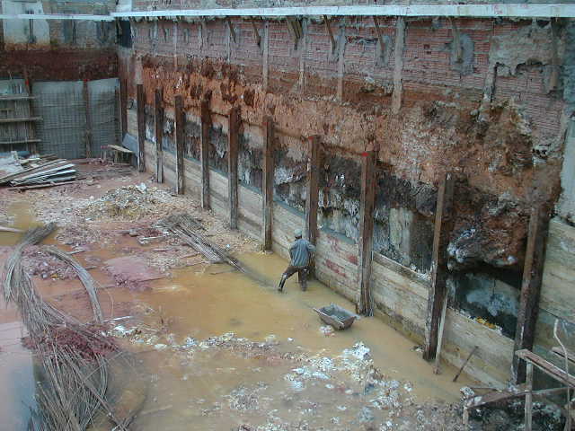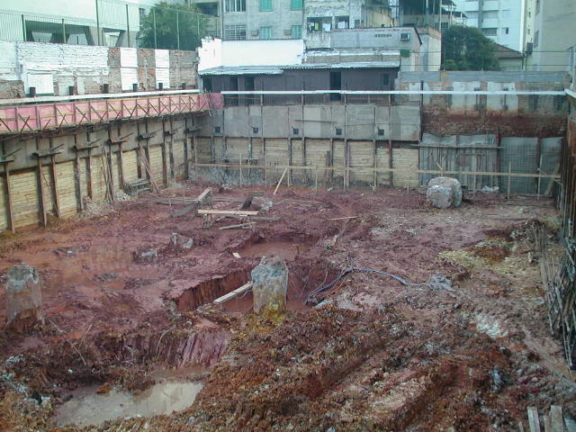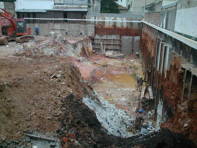 | - Foto em 25/06/08 - Cortina em andamento, e atirantamento na lateral esquerda. | |