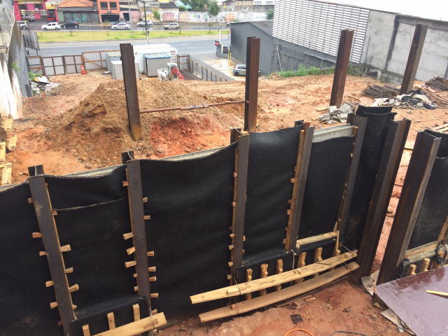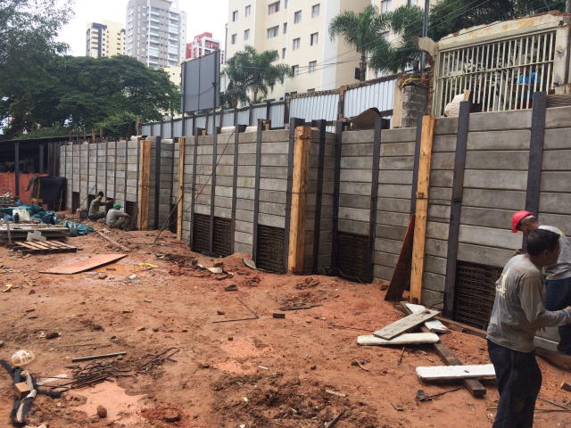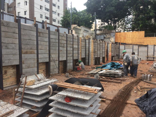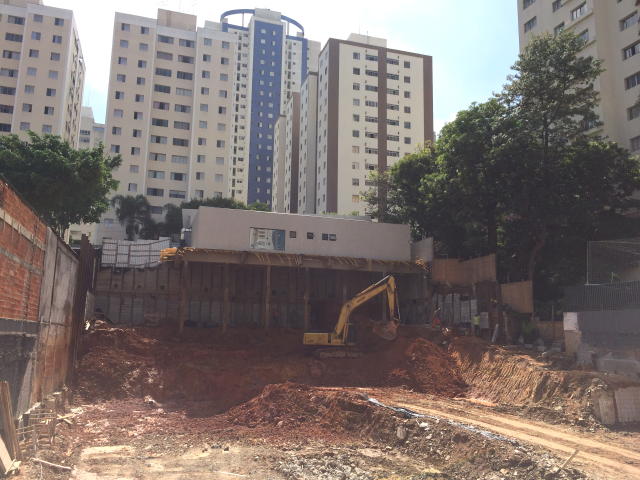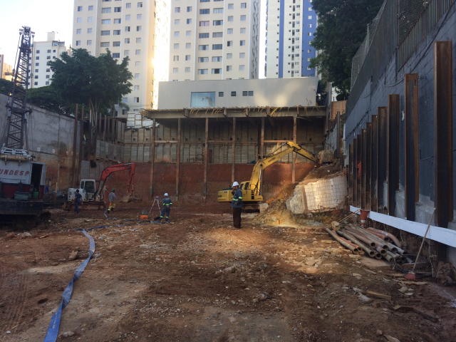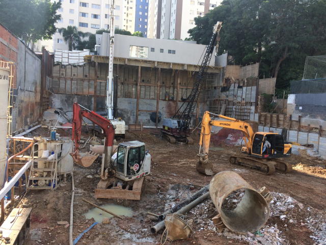 | - Foto em 08/03/2018 - Escavação geral em andamento, e plaqueamento das cortinas. | |