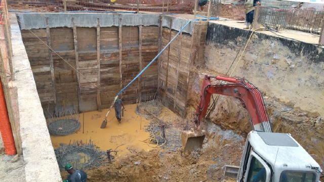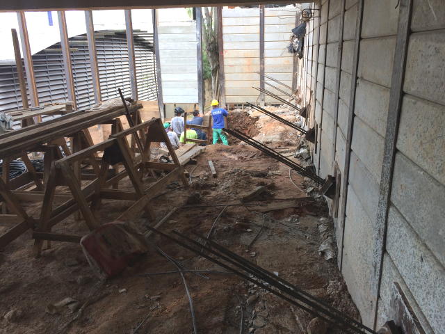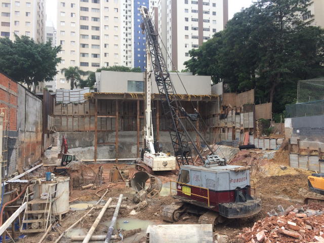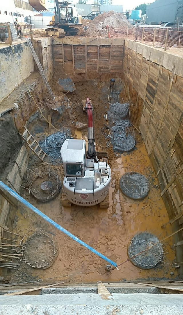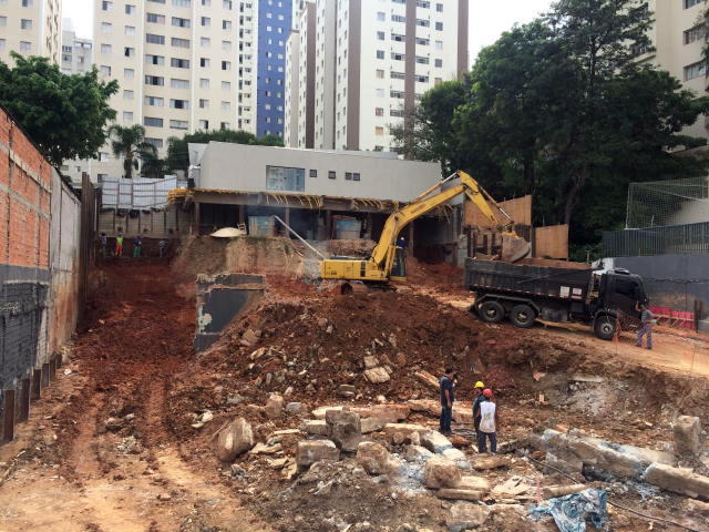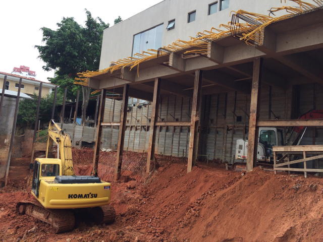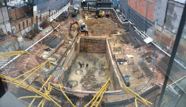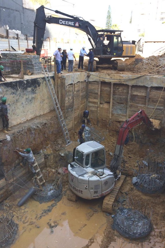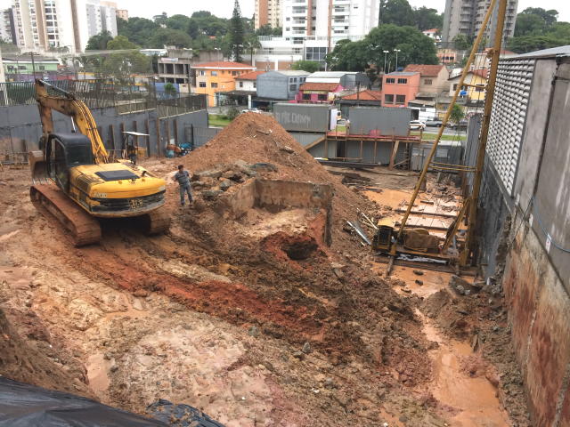 - Foto em 05/06/2018 - Preparação para escavação do bloco central do elevador. |