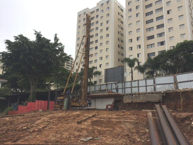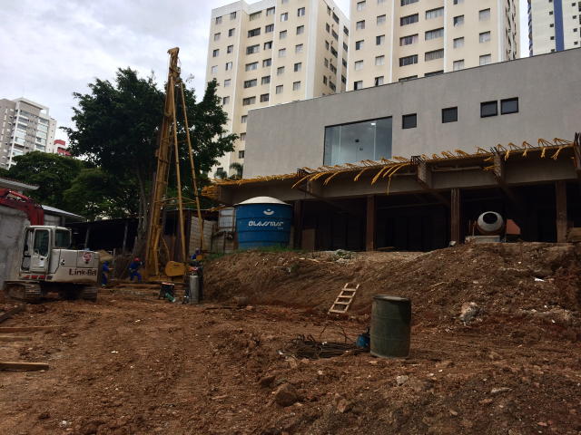| - Foto em 05/04/2018 - Execução das fundações em estacas escavadas de grande diametro. | |