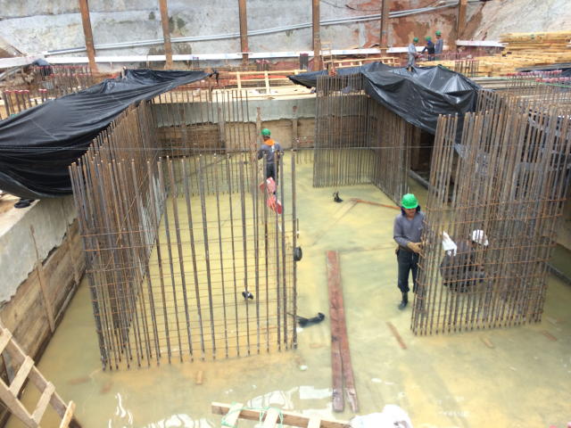 | - Foto em 26/04/2017 - Preparação da cortina para concretagem até a cota do 1o.SS. | |