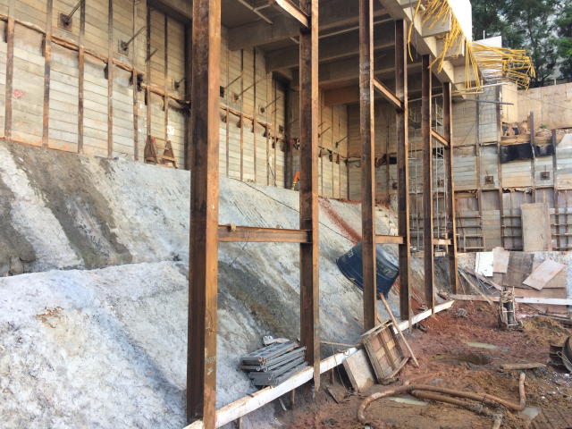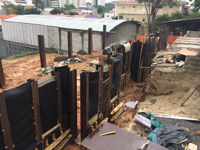 | - Foto em 05/03/2018 - Escavação geral em andamento, e plaqueamento das cortinas. | |