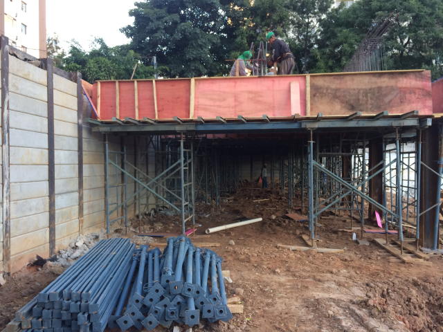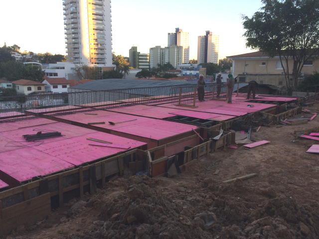 | - Foto em 02/06/2017 - Preparação do trecho da laje do Térreo para o Stand de Vendas. | |