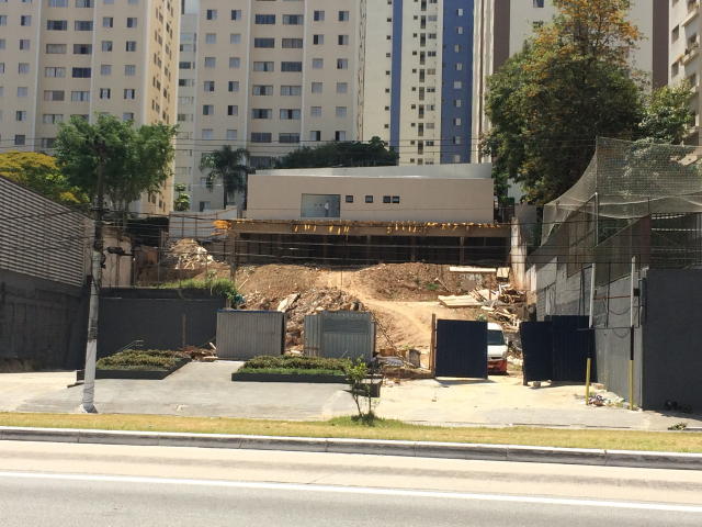 Foto em 12/04/2017 - Montagem da cortina junto ao recuo da Av.Mascote