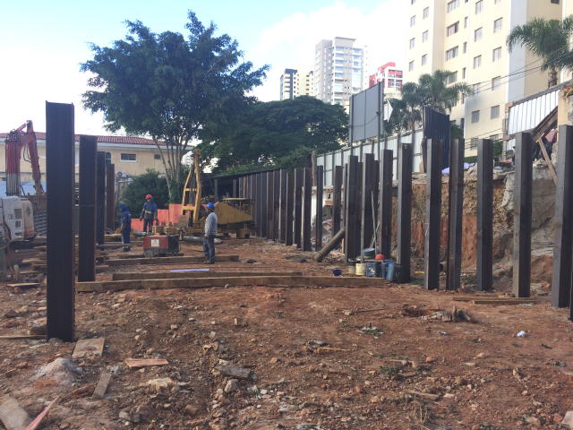 | - Foto em 17/03/2017 - Cravação dos perfis metálicos de periferia, junto a Av.Mascote. | |