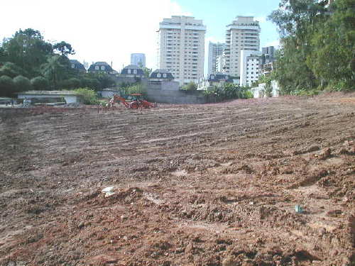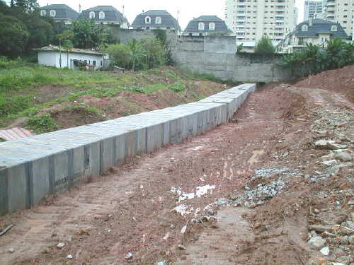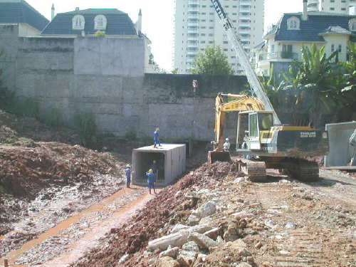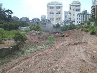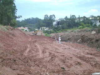 | - Foto em 10/05/04 - Terraplanagem sobre a galeria concluída. | |