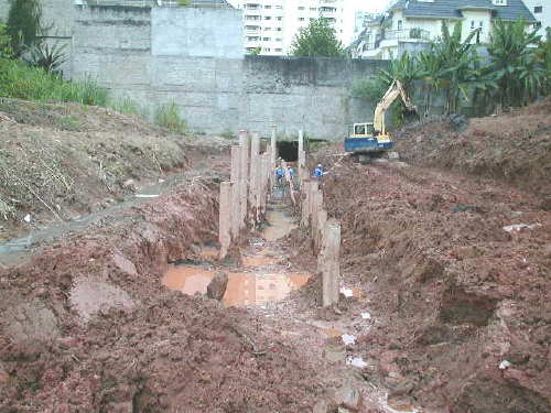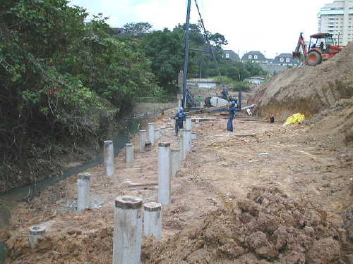 | - Foto em 03/03/04 - Iniciando escavação e arrasamento das estacas a jusante. | |