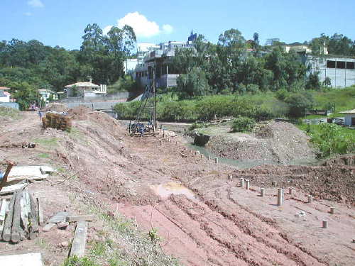 | - Foto em 19/02/04 - Terraplanagem para movimentação do Bate-Estacas. | |