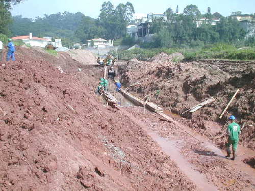 | - Foto em 20/04/04 - Iniciando compactação ao lado das galerias. | |