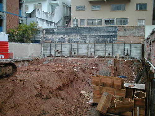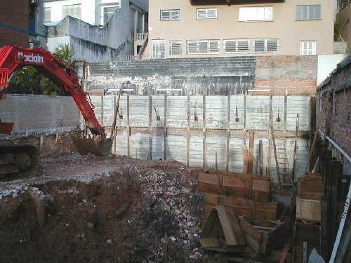 | - Foto em 10/01/06 - Cortina concretada. Escavação retomada. | |
