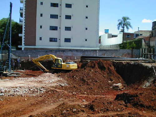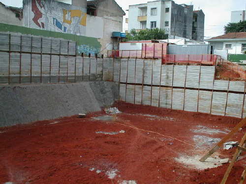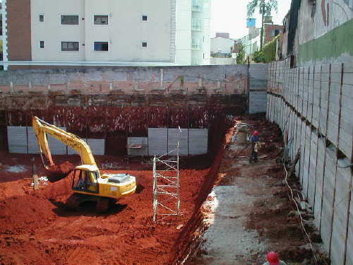 Foto em 10/05/02 - Escavação e cortinas concluídas