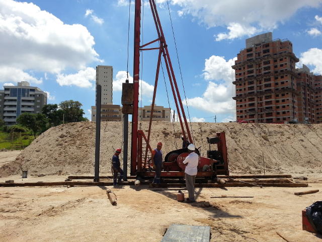 | - Foto em 29/11/2013- Cravação dos perfis metálicos de periferia. | |