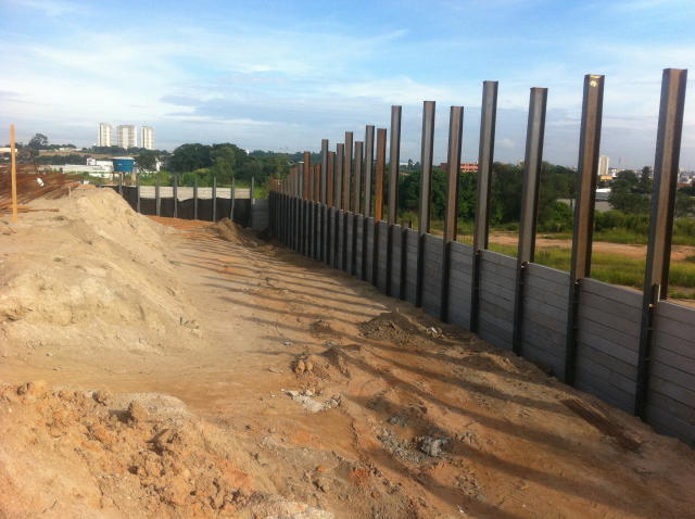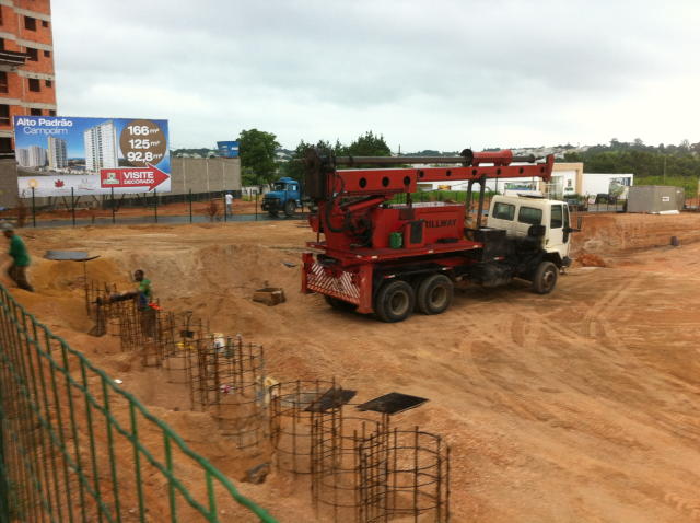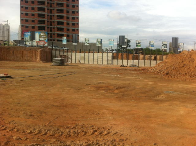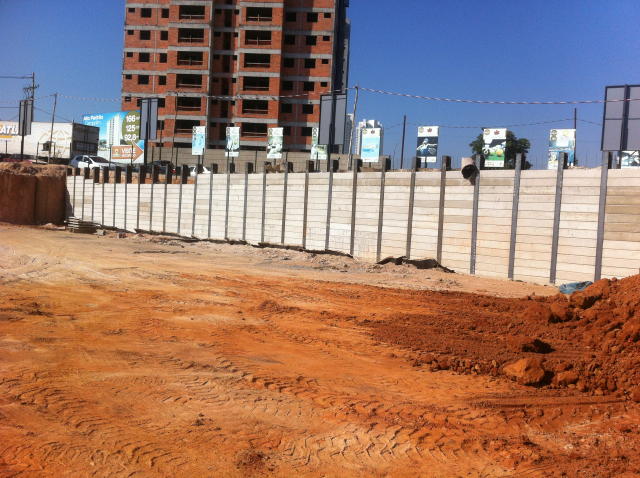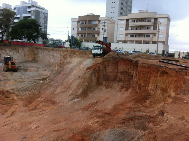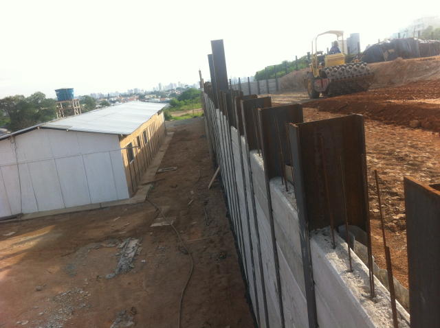| - Foto em 08/05/2014 - Contenções concluídas, e fundação em andamento. | |