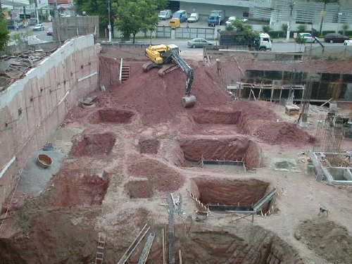 | - Foto em 06/04/06 - Escavação das sapatas do corpo do prédio. | |