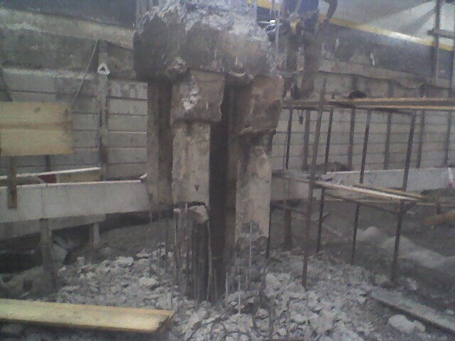 Foto em 30/03/2009 - Demolição das vigas de travamento antigas. |