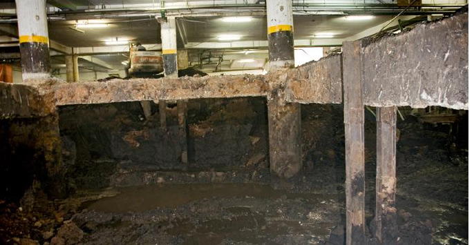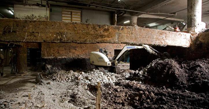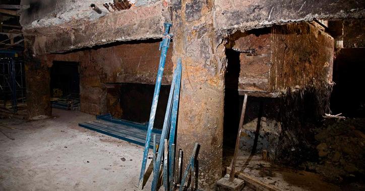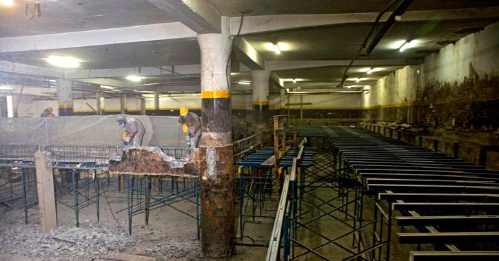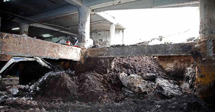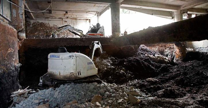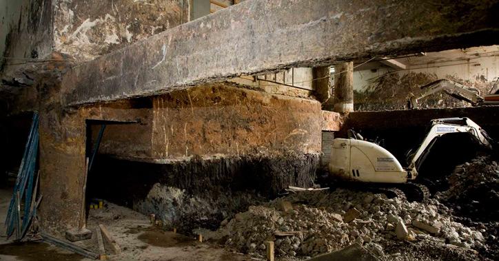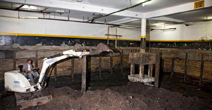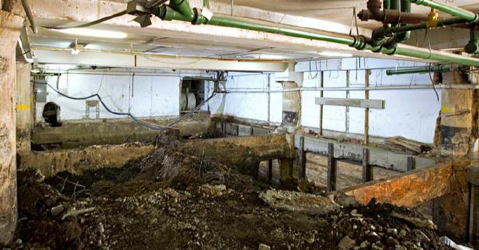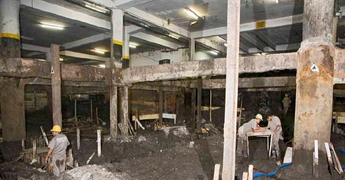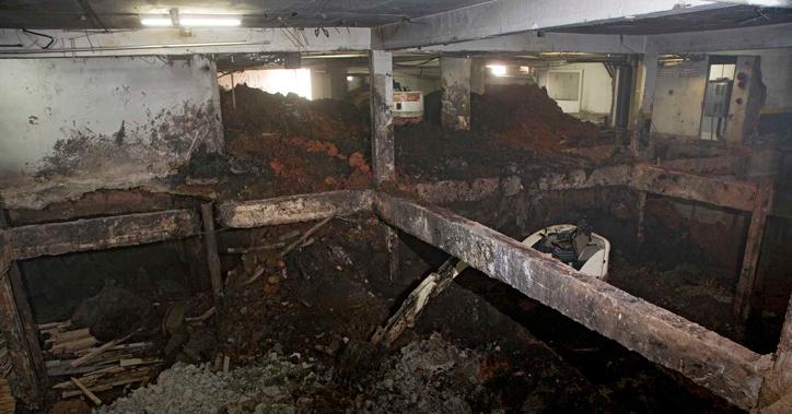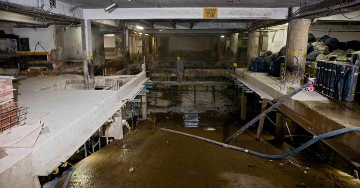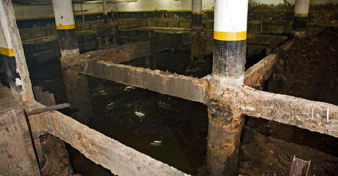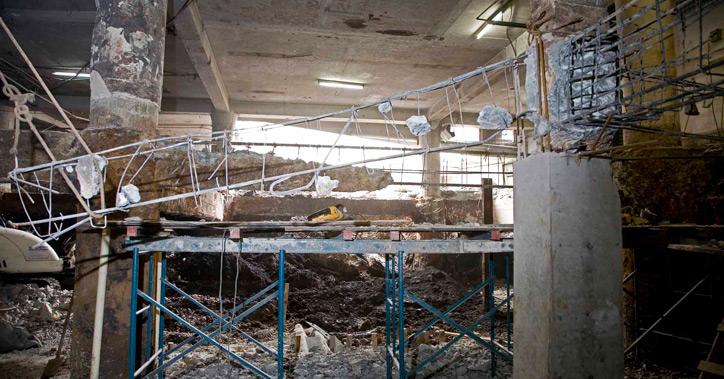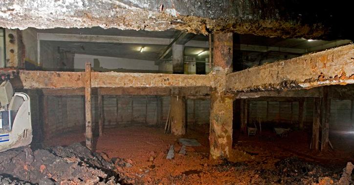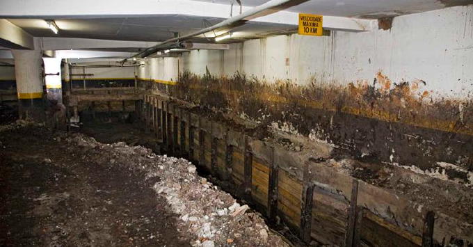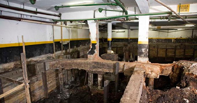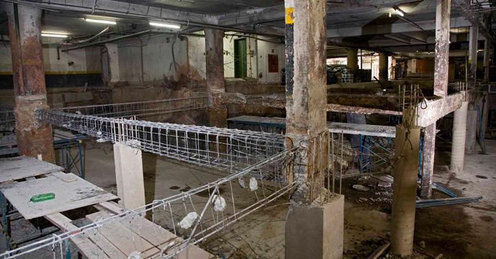 Foto em 12/02/2009 - Trecho do sub-solo com as fundações