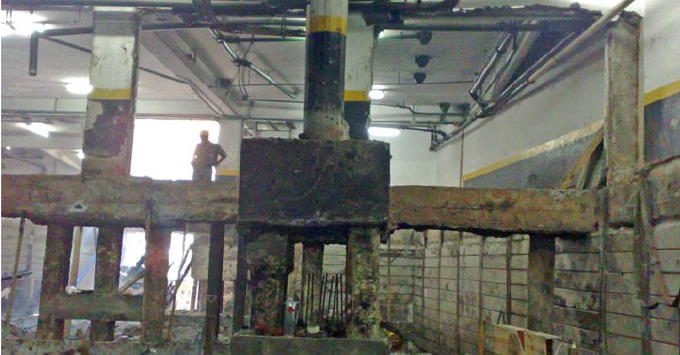 Foto em 21/04/2009 - Demolição das vigas de travamento antigas. |