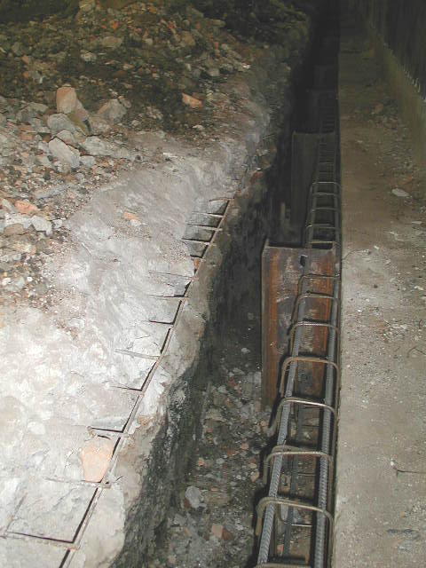 Foto em 04/09/2008 - Perfis cravados junto a viga baldrame da cortina