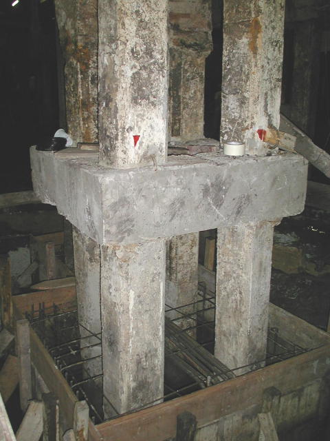 Foto em 09/03/2009 - Concretagem do novo pilar sobre o bloco existente. |